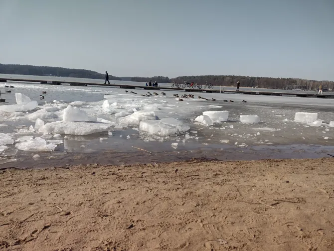 Topnieje od dwóch tygodni ale stopnieć nie może! Potężne metrowe kry na Ukielu trzymają się mocno!