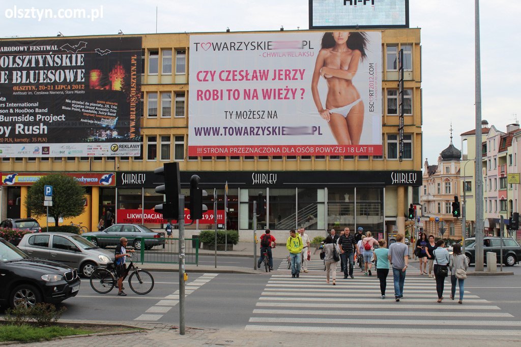Jak informowaliśmy Was w miniony piątek - w centrum miasta, tuż obok ratusza zawisł billboard z reklamą portalu towarzyskiego, który promował się niewybrednym hasłem ''Czy Czesław Jerzy robi to na wieży?''. Zawisł - a chwilę później zniknął, kiedy o sprawie poinformowały lokalne media. Sprawą zajęła się także policja i jak się okazuje w tej sprawie brak znamion wykroczenia lub przestępstwa.