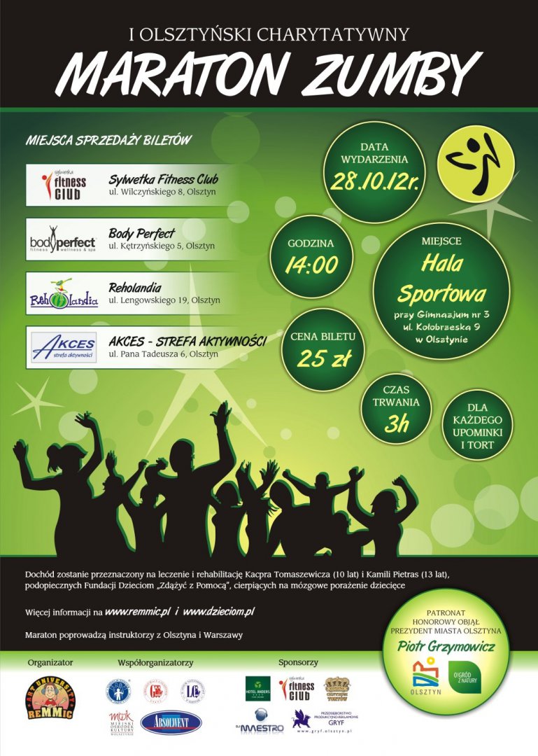 To będzie pierwsze tego typu wydarzenie w stolicy Warmii i Mazur. Jak mówią sami organizatorzy Maratonu Zumby, akcja ma na celu zaprezentować mieszkańcom Olsztyna tą nową formę aktywności fizycznej, zaszczepić w nich fascynację tym podbijającym serca na całym świecie tańcem, a jednocześnie zachęcić do wspierania Fundacji Dzieciom Zdążyć z Pomocą.
